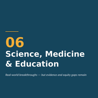 Science, medicine, and education. Frontier models now outperform human chemists on ChemBench on average. Physicians using AI scribes report up to 83% less time writing clinical notes. At the same time, only 5% of clinical AI studies used real patient data, and only 6% of teachers say their AI policies are clear.